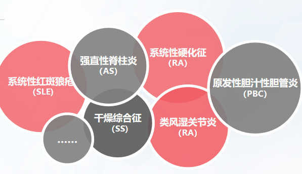 它與各種自身免疫疾病相關(guān),常見于干燥綜合征(50~70%)、SLE(30%)、PBC(20%) |